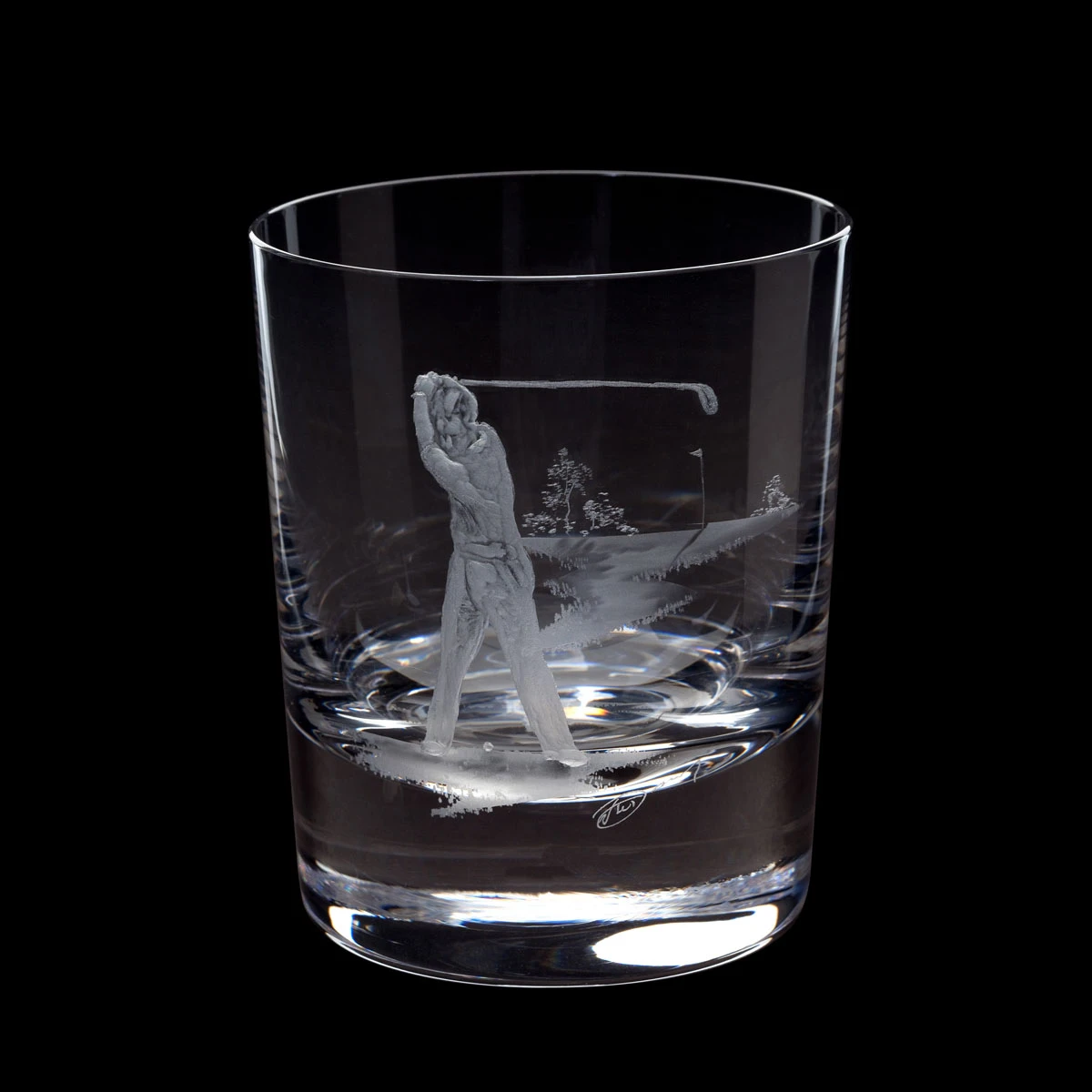 Treat the golf enthusiast in your life to a one-of-a-kind memento with this luxurious hand engraved crystal Whisky Tumbler. Featuring an intricately detailed male golfer, each masterpiece is carefully crafted and signed by Master Engraver Nick Davey making it truly unique!